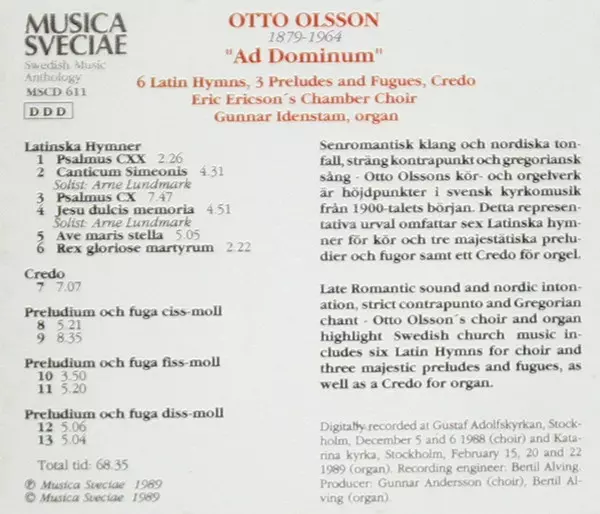 | Titolo | Ad Dominum (6 Latinska Hymner, 3 Preludier Och Fugor, Credo) |