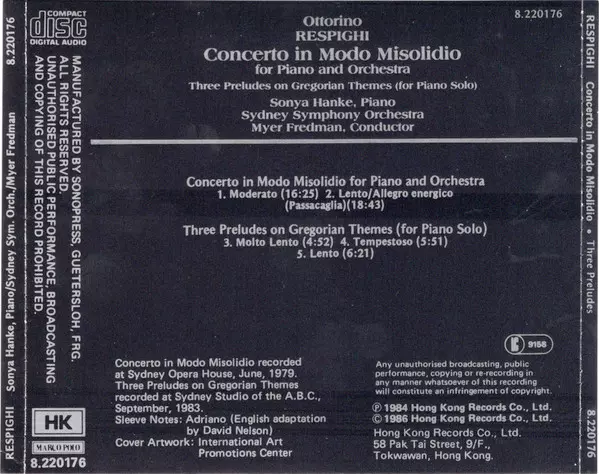 | Artista | Ottorino Respighi | Myer Fredman | Sydney Symphony Orchestra | Sonya Hanke |