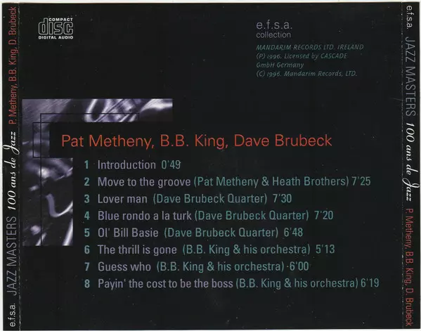 | 1 | Dave Brubeck, B.B. King, Pat Metheny: Introduction | 0:49 min | |