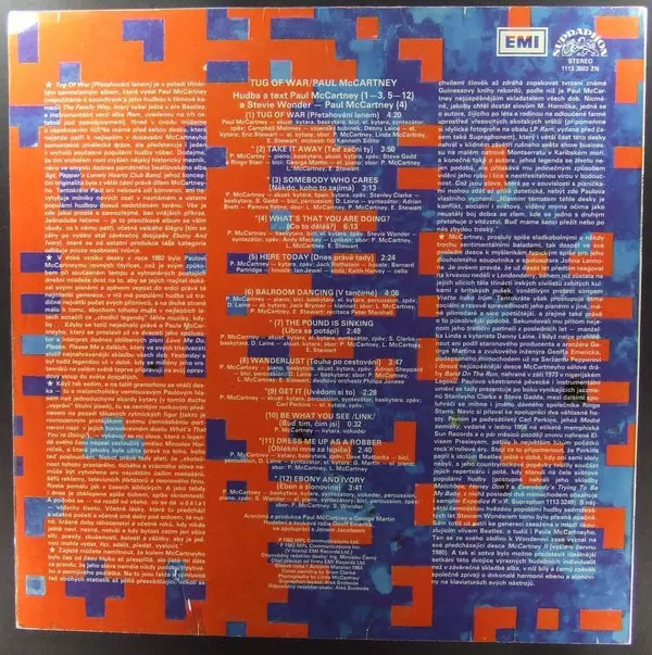 Tug of War is an album released in 1982 by Paul McCartney . The album was produced by George Martin and features guest appearances by Stevie Wonder and Paul's former Beatles bandmate Ringo Starr. The album was a commercial success, reaching number one in the United Kingdom and number two in the United States. The album was certified triple plati...