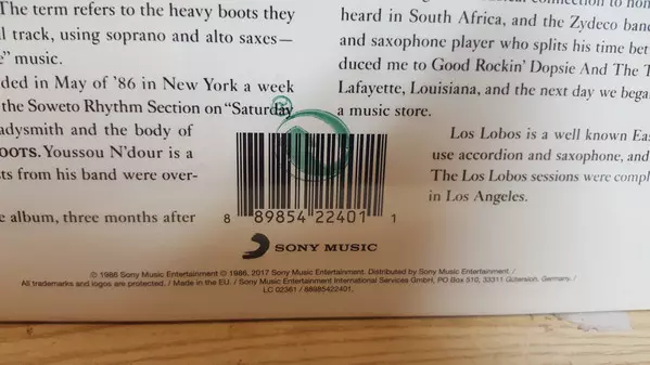 Paul Simon: Graceland versione su vinile LP in standard edizione. Questa particolare edizione è stata pubblicata in Europa nella casa editrice Legacy in collaborazione con Sony Music in data 13. ottobre 2017.