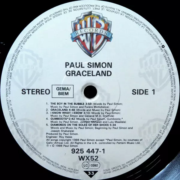 Backing Vocals [Background Vocals] Paul Simon | Bass Lloyd Lelose | Featuring [With] Stimela | Guitar Ray Phiri | Guitar Synthesizer Adrian Belew | Soprano Saxophone Morris Goldberg | Words By, Music By Paul Simon