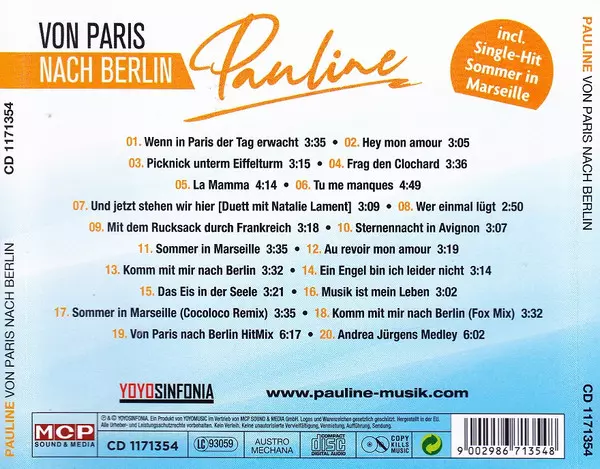 Pauline: Von Paris Nach Berlin versione su CD in standard edizione. Questa particolare edizione è stata pubblicata in Austria nella casa editrice MCP Sound & Media in collaborazione con Yoyosinfonia in data 18. settembre 2020. Album comprende generi Pop e Schlager.