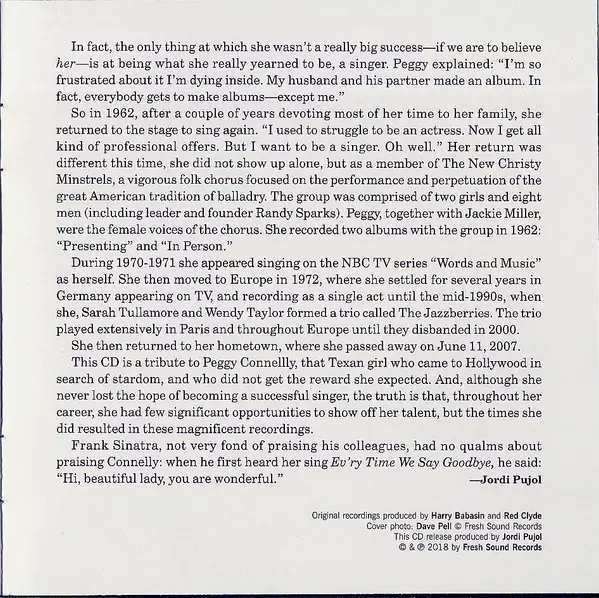 | Artista | Peggy Connelly | Marty Paich Orchestra | Russ Garcia "Wigville" Band |