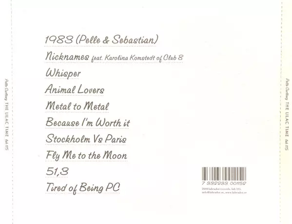 Pelle Carlberg: The Lilac Time versione su CD in standard edizione. Questa particolare edizione è stata pubblicata in Svezia nella casa editrice Labrador in data 18. novembre 2008. Album comprende generi Rock, Pop, Indie Rock e Musica acustica.