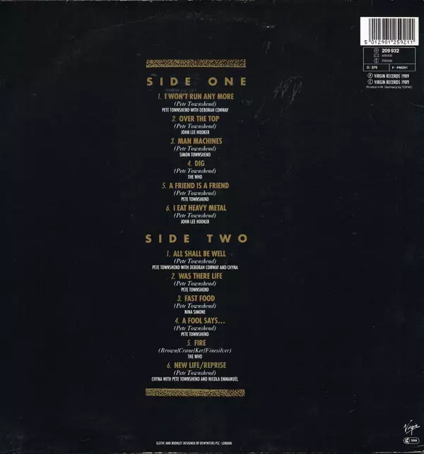 | B6 | Pete Townshend, Chyna, Nicola Emmanuel: New Life / Reprise | 5:10 min | |