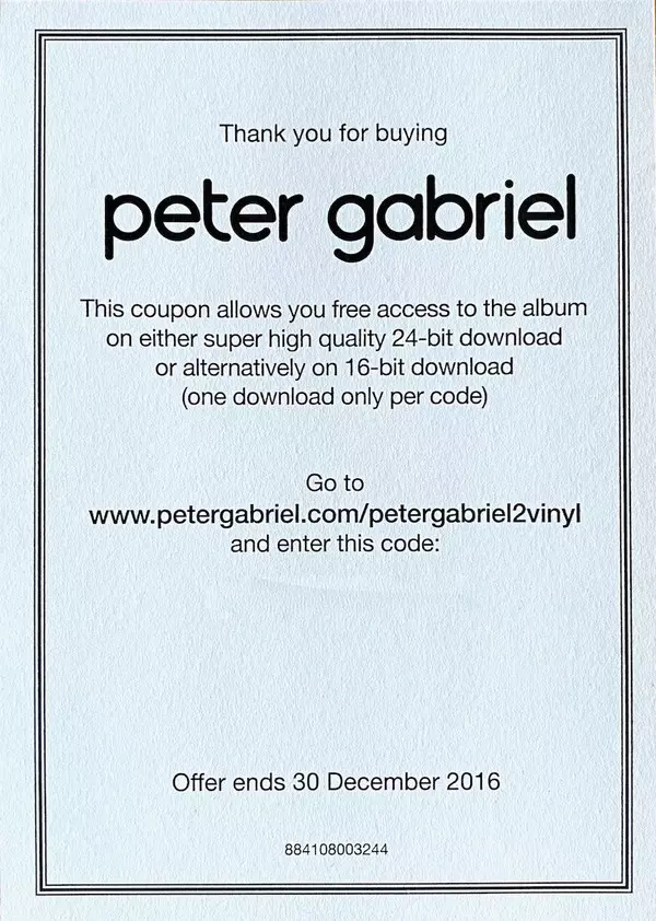 Peter's second solo album, recorded in the Netherlands and New York, was produced by Robert Fripp. The album was released in June 1978. Fripp continued to nurture Peter's growing fascination with electronics, and the resulting album is denser and more experimental than the debut. Peter Gabriel is one of the most influential artists of this era f...