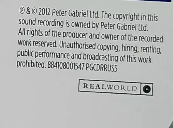 | Casa editrice | Real World Records |