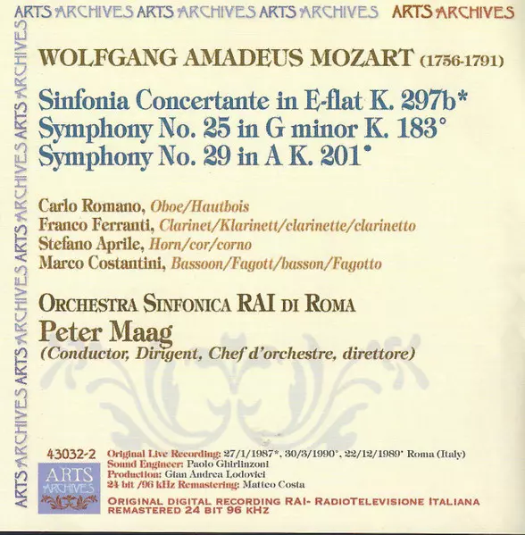| Artista | Wolfgang Amadeus Mozart | Orchestra Sinfonica Di Roma Della RAI | Peter Maag |