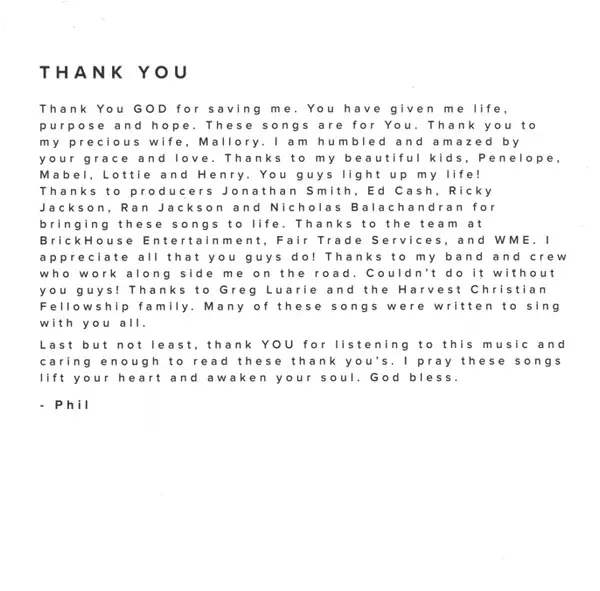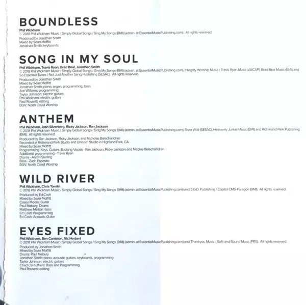 Acoustic Guitar [Acoustic Guitars] Phil Wickham | Bass, Drum Programming [Programming] Chad Carouthers | Drums Paul Mabury | Edited By [Editing], Backing Vocals [Background Vocals] David Cook (9) | Electric Guitar [Electric Guitars], Keyboards, Drum Programming [Programming], Backing Vocals [Background Vocals] Jonathan Smith (4) | Keyboards David Ramirez (7) | Mixed By Sean Moffitt | Producer [Produced By] Jonathan Smith (4) | Written-By Jonathan Smith (4), Phil Wickham