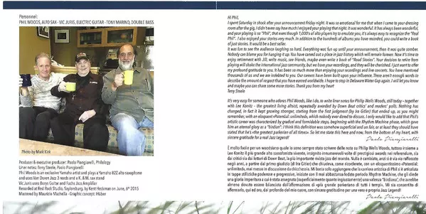 | Artista | Vic Juris | Tony Marino | Phil Woods Trio |