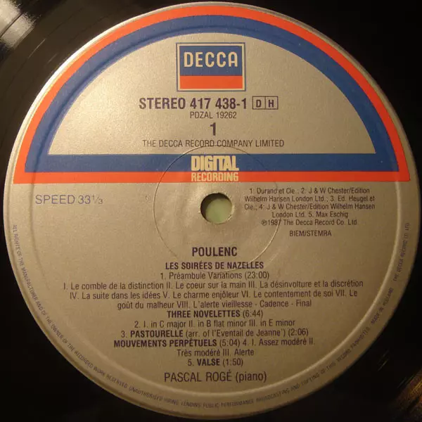 | Artista | Pascal Rogé | Francis Poulenc |