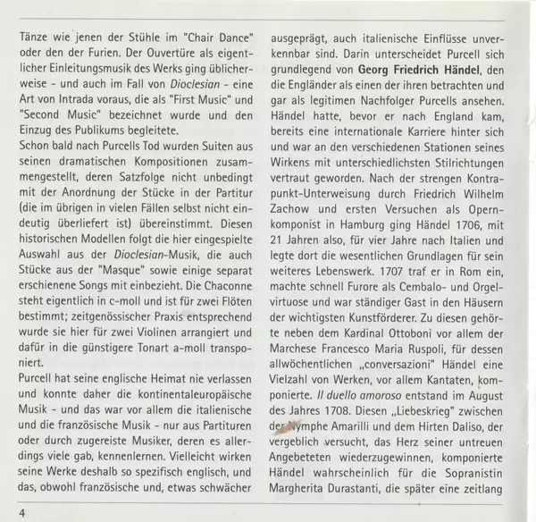 | Artista | Georg Friedrich Händel | Henry Purcell | Freiburger Barockorchester | Michael Chance | Nancy Argenta | Gottfried Von Der Goltz |