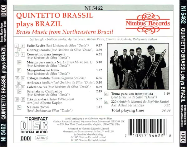 | Artista | Heitor Villa-Lobos | Quinteto Brassil | José Ursicino Da Silva | Antônio Manuel do Espírito Santo |