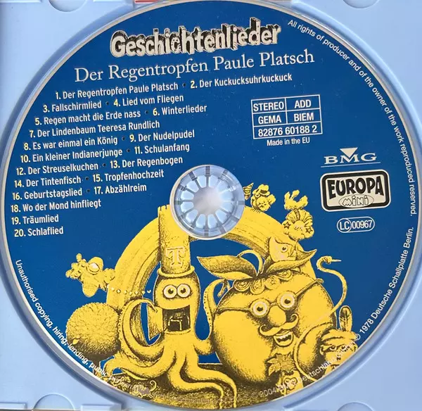| Titolo | Geschichtenlieder - Der Regentropfen Paule Platsch |