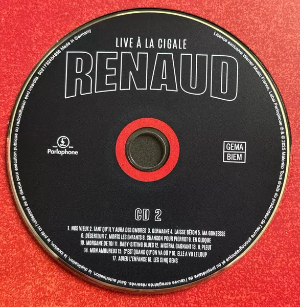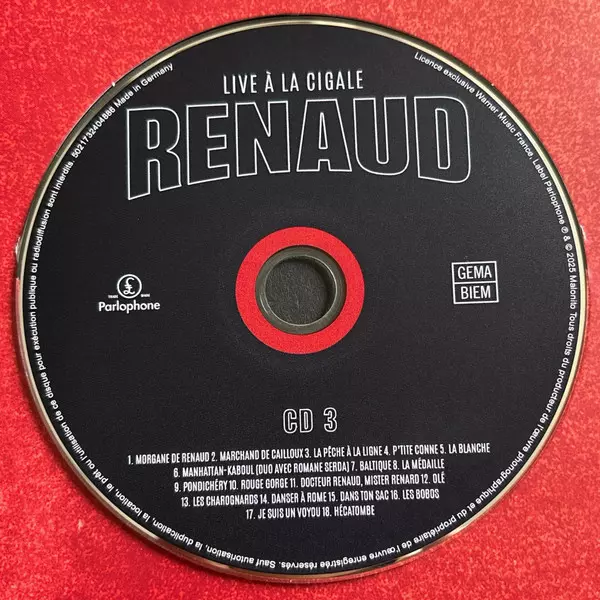 Renaud: Live À La Cigale versione su vinile 6LP/4CD/DVD/Set di cofanetti in standard edizione. Questa particolare edizione è stata pubblicata in Europa nella casa editrice Parlophone in data 30. maggio 2025. Album comprende generi Rock, Alternative rock e Chanson.