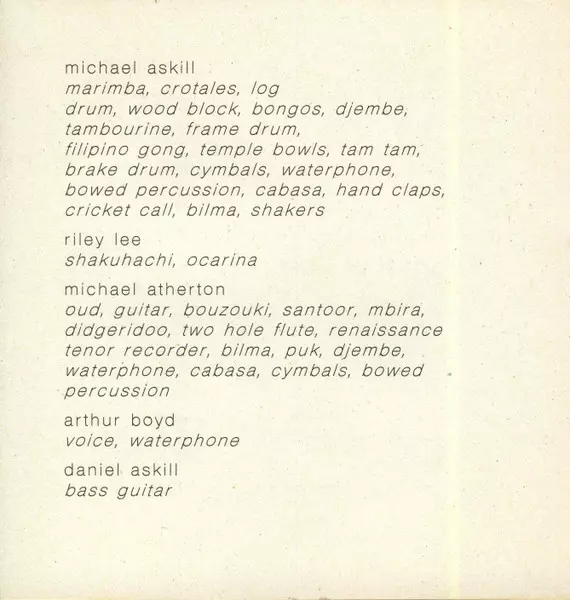 | Artista | Michael Askill | Michael Atherton | Riley Lee |