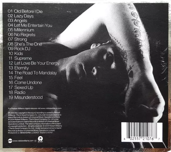 This collection of Robbie Williams' best-known songs also includes two previously unknown new tracks, namely "Radio" and "Miusunderstood".