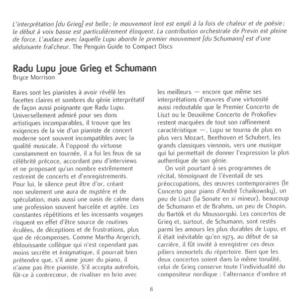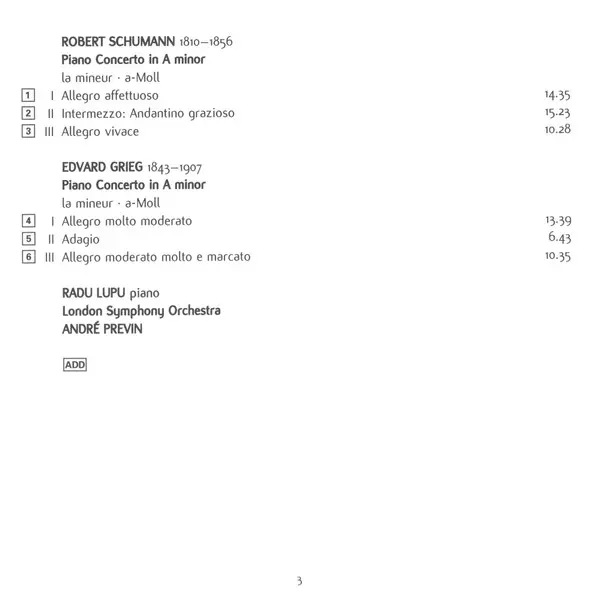 | Artista | The London Symphony Orchestra | André Previn | Robert Schumann | Edvard Grieg | Radu Lupu |
