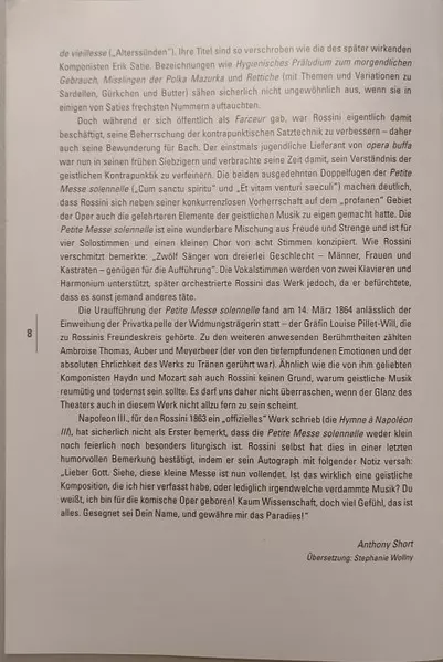 | Titolo | Petite Messe Solennelle |