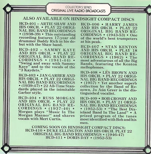 | Casa editrice | Hindsight Records, Inc. |