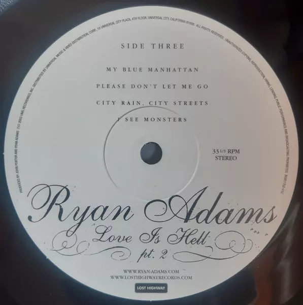 Ryan Adams: Love Is Hell Pts.1&2 versione su vinile 2EP in standard edizione. Questa particolare edizione è stata pubblicata in Stati Uniti nella casa editrice Lost Highway in data 16. agosto 2024. Album comprende generi Rock e Alternative rock.