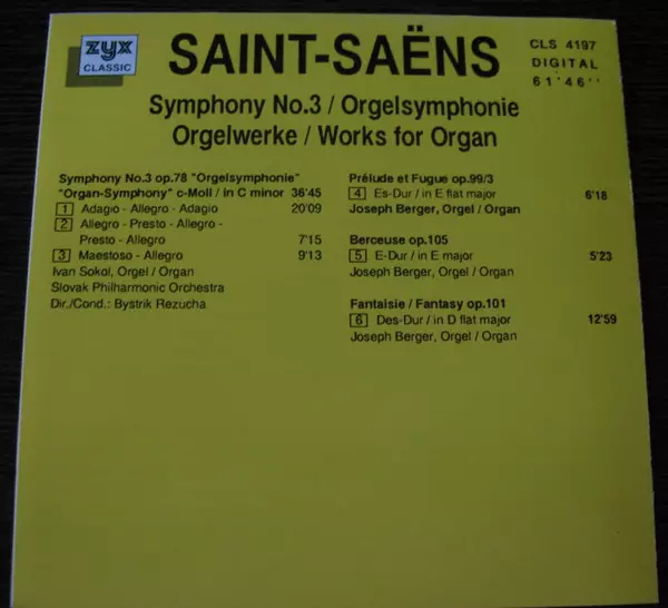 | Artista | Slovak Philharmonic Orchestra | Camille Saint-Saëns | Ivan Sokol | Bystrík Režucha | Joseph Berger |