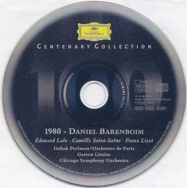 | Artista | Itzhak Perlman | Daniel Barenboim | Camille Saint-Saëns | Orchestre De Paris | Édouard Lalo | Chicago Symphony Orchestra |