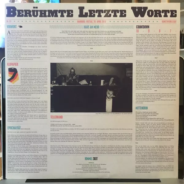 Samy Deluxe: Berühmte Letzte Worte versione su vinile 2LP in standard edizione. Questa particolare edizione è stata pubblicata in Germania, Austria e Svizzera nella casa editrice Vertigo in data 29. aprile 2016. Album comprende generi Hip Hop, Conscious Hip Hop e Boom Bap.