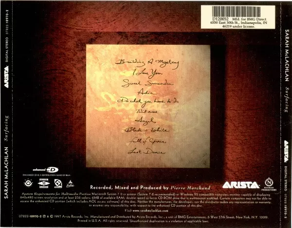 Sarah McLachlan: Surfacing versione su CD in standard edizione. Questa particolare edizione è stata pubblicata in Stati Uniti nella casa editrice Arista in collaborazione con Nettwerk in data 17. settembre 2013.