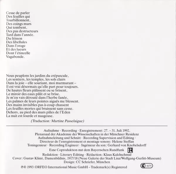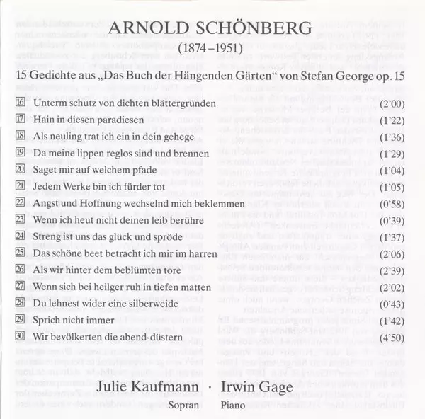 Artista | Claude Debussy | Richard Strauss | Arnold Schoenberg | Irwin Gage | Julie Kaufmann |