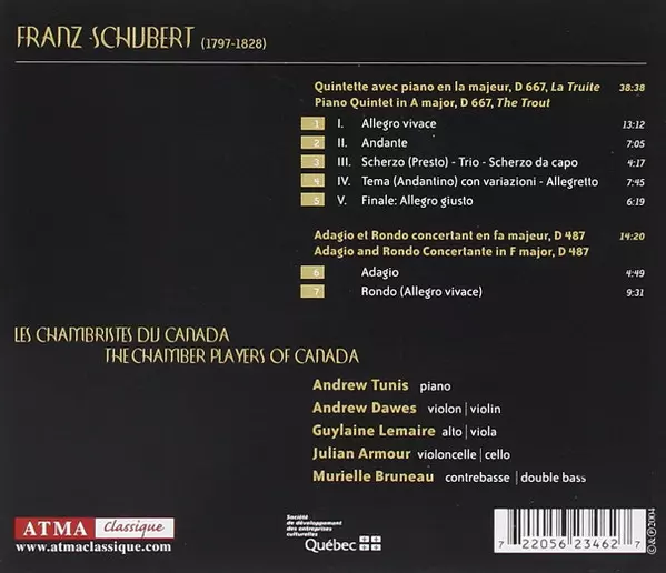 | Titolo | Quintette En La Majeur D 667 «La Truite» / Adagio Et Rondo Concertant En Fa Majeur D487 |