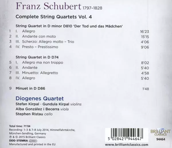 | Titolo | Complete String Quartets Vol. 4 (String Quartet D74 / String Quartet D810 'Der Tod Und Das Mädchen' / Minuet D86) |