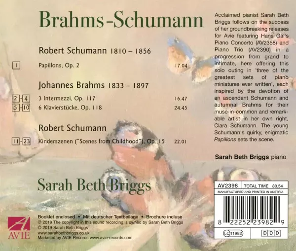 | Artista | Johannes Brahms | Robert Schumann | Sarah Briggs |