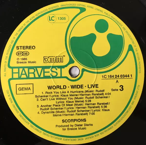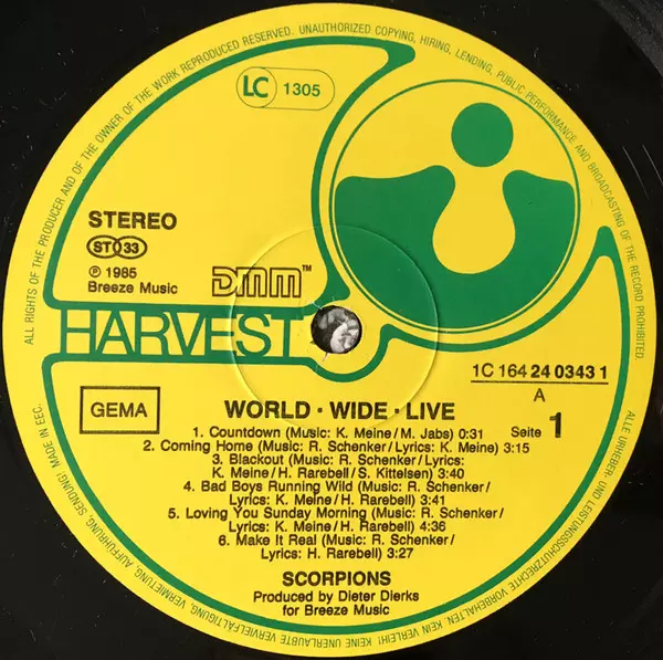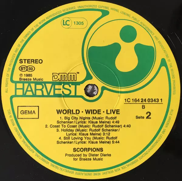 Scorpions: World Wide Live versione su vinile 2LP in standard edizione. Questa particolare edizione è stata pubblicata in Germania nella casa editrice Harvest anno 1985.
