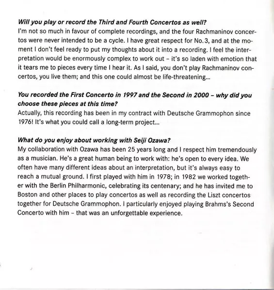 | Artista | Sergei Vasilyevich Rachmaninoff | Boston Symphony Orchestra | Seiji Ozawa | Krystian Zimerman |