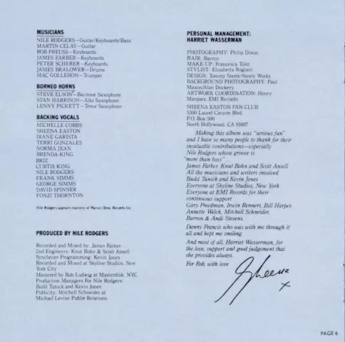 | Artista | Sheena Easton |