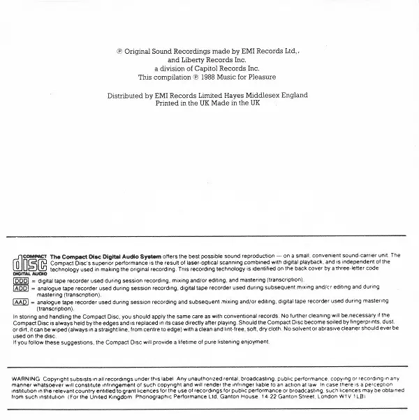 | Per saperne di più | Music For Pleasure CD compilation 2017 (UK & Europe) |
