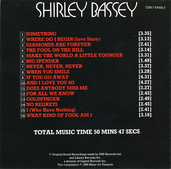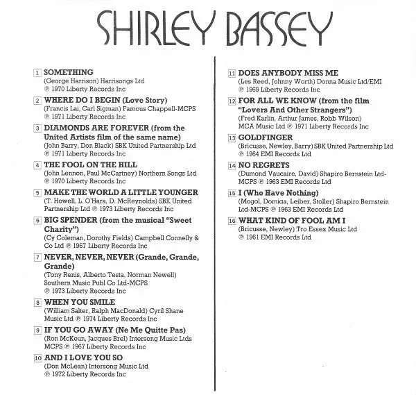 | Artista | Shirley Bassey |