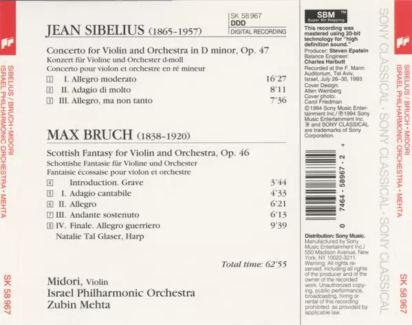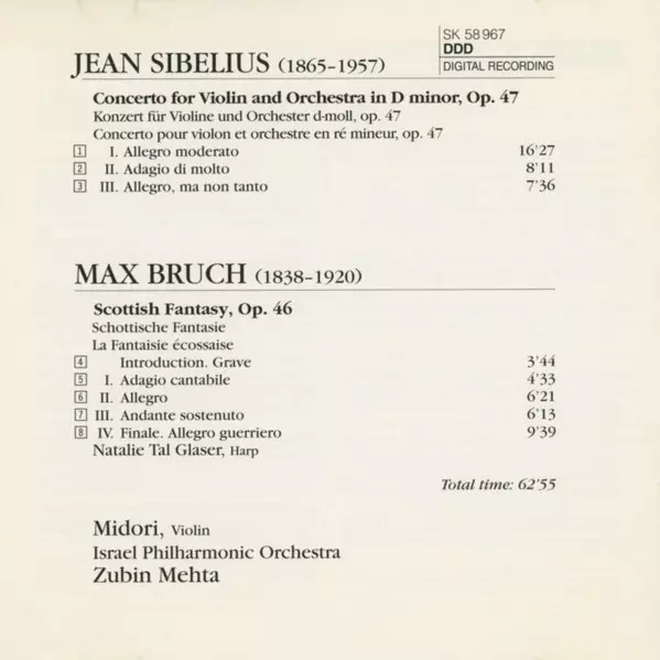 | Artista | Zubin Mehta | Jean Sibelius | Max Bruch | Israel Philharmonic Orchestra | Midori Goto |
