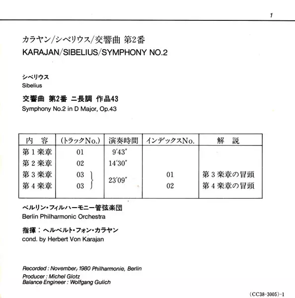 | Artista | Herbert von Karajan | Berliner Philharmoniker | Jean Sibelius |