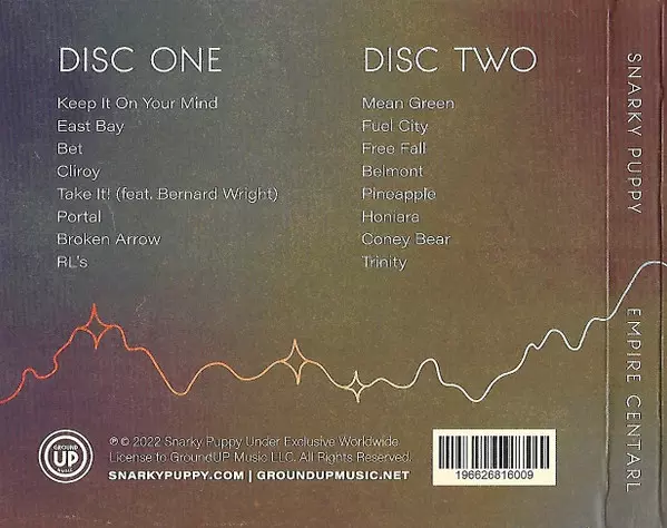 Snarky Puppy: Empire Central versione su 2CD in standard edizione. Questa particolare edizione è stata pubblicata nella casa editrice GroundUP Music LLC in data 7. ottobre 2022. Album comprende generi Jazz, Fusion, Jazz-Rock e Contemporary Jazz.