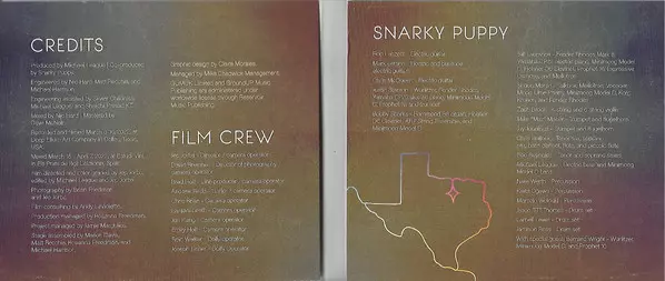 Arranged By Mark Lettieri, Snarky Puppy | Bass Clarinet Chris Bullock (2) | Drums Jamison Ross, Jason Thomas, Larnell Lewis | Electric Bass Michael League | Electric Guitar Bob Lanzetti, Chris McQueen, Mark Lettieri | Electric Organ Bobby Sparks | Electric Piano Bill Laurance, Justin Stanton | Flugelhorn Jay Jennings | Keyboards Shaun Martin | Percussion Keita Ogawa, Marcelo Woloski, Nate Werth | Soprano Saxophone Bob Reynolds | Synth Bill Laurance, Bobby Sparks, Justin Stanton, Shaun Martin | Talkbox Shaun Martin | Tenor Saxophone Bob Reynolds, Chris Bullock (2) | Trumpet Jay Jennings, Justin Stanton, Mike "Maz" Maher | Violin Zach Brock | Vocoder Shaun Martin | Written-By Mark Lettieri