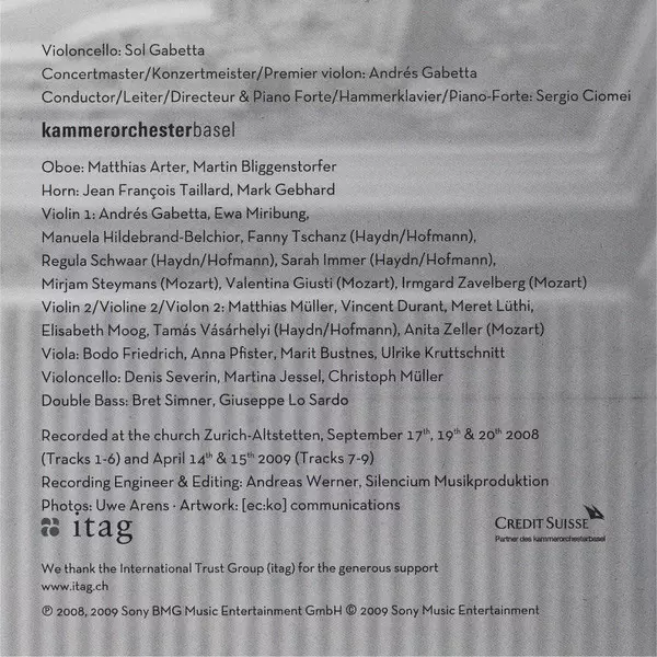 | Artista | Sol Gabetta | Kammerorchester Basel | Sergio Ciomei |