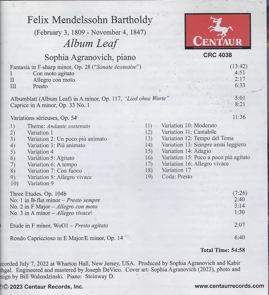 | Titolo | Album Leaf: Piano Works By Felix Mendelssohn |