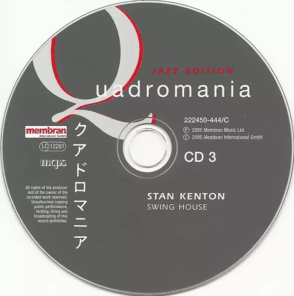 Stan Kenton: Swing House versione su 4CD/Set di cofanetti in rimasterizzati edizione. Questa particolare edizione è stata pubblicata in Germania nella casa editrice Quadromania in data 1. maggio 2006. Album comprende generi Jazz, Contemporary Jazz, Big Band e Swing.
