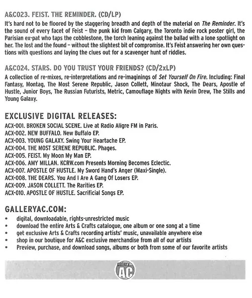 Stars: Do You Trust Your Friends? versione su CD in standard edizione. Questa particolare edizione è stata pubblicata in Canada nella casa editrice Arts & Crafts International in data 4. marzo 2019. Album comprende generi Rock, Musica elettronica, Indie Rock, Folk Rock, Downtempo e Synth-Pop.