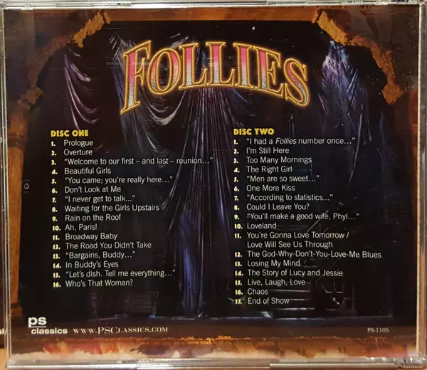 Stephen Sondheim: Follies (New Broadway Cast Recording) DLX versione su 2CD in deluxe edizione. Questa particolare edizione è stata pubblicata in Stati Uniti nella casa editrice PS Classics in data 29. novembre 2011. Album comprende generi Palcoscenico e schermo e Musical.