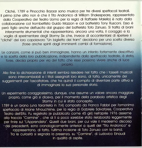 | Artista | Stormy Six | Guido Mazzon | Tony Rusconi |