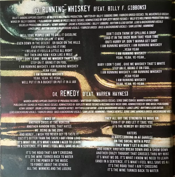Acoustic Guitar Srđan Simić - Kamba | Backing Vocals [Background Vocals] Andrea Grossi (2), Francis Benitez | Bass, Electric Organ [Hammond], Backing Vocals [Background Vocals] Fabrizio Grossi | Drums, Percussion Kenny Aronoff | Electric Guitar, Lead Vocals, Backing Vocals [Background Vocals] Lance Lopez | Harmonica Jimmy Z | Lap Steel Guitar [Lap Steel] Garrett Hollbrock | Written-By Fabrizio Grossi, Srđan Simić - Kamba